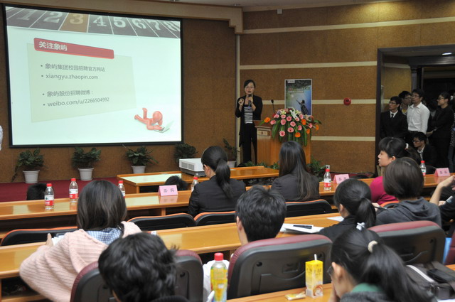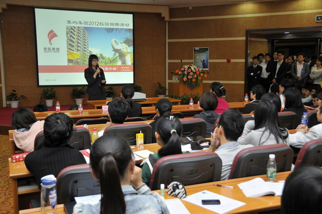 2012年象嶼集團(tuán)全國校園招聘首場宣講會(huì)于1123晚在廈門大學(xué)拉開帷幕。集團(tuán)人力資源總監(jiān)林志勇、象嶼股份人力資源部經(jīng)理林焱為同學(xué)們進(jìn)行了精彩的宣講并回答了同學(xué)們現(xiàn)場的提問,鼓勵(lì)廈大的優(yōu)秀學(xué)子們加入到象嶼的大家庭。據(jù)悉,此次宣講會(huì)吸引了近500位應(yīng)屆生參加,場面火爆,提問環(huán)節(jié)積極踴躍,會(huì)后現(xiàn)場收到簡歷近500 份。