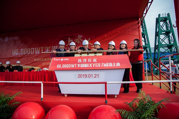 1月21日,由南通象嶼海洋裝備有限責任公司(以下簡稱“象嶼海裝”)建造的60,000DWT半潛船順利出塢。江蘇泛洲船務有限公司董事長江厥杰、中國科學院自動化研究所軍事顧問原海軍訓練基地副司令員張錦榮、江蘇省交戰(zhàn)辦主任林有鎮(zhèn)、南京交通運輸局局長徐衛(wèi)國、中國船級社江蘇分社副總經(jīng)理張東標、象嶼集團黨委委員、象嶼股份黨委書記、總經(jīng)理、象嶼海裝董事長鄧啟東等共計200多名各界人士參加了象嶼海裝60,000DWT遠洋自航半潛船上水儀式。
