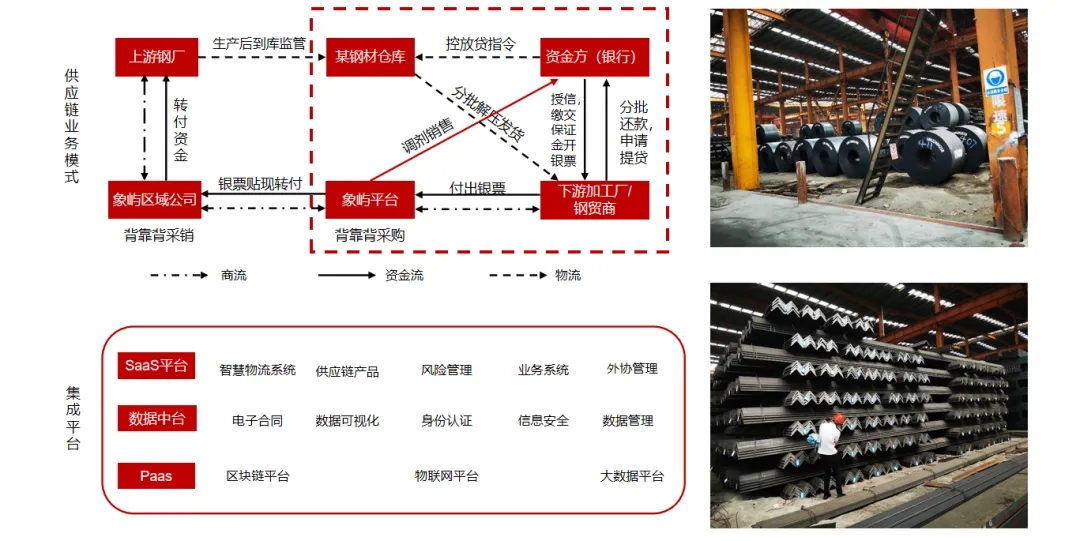 象嶼股份作為供應(yīng)鏈核心企業(yè),借助IOT(物聯(lián)網(wǎng))、區(qū)塊鏈、AI等技術(shù),圍繞塑化、鋁產(chǎn)品、鋼材等產(chǎn)品進行倉單質(zhì)押融資,通過數(shù)字化建設(shè),輔助背書客戶資信、貨權(quán)監(jiān)管和輔助銷售,獲取資金方的認可,幫助中小微企業(yè)客戶增信,解決中小微企業(yè)融資難的問題。目前象嶼智慧物流平臺已獲得建行總行、普洛斯等多家金融機構(gòu)數(shù)字化監(jiān)管倉準入,《人民日報》等媒體也作了專題報道。
