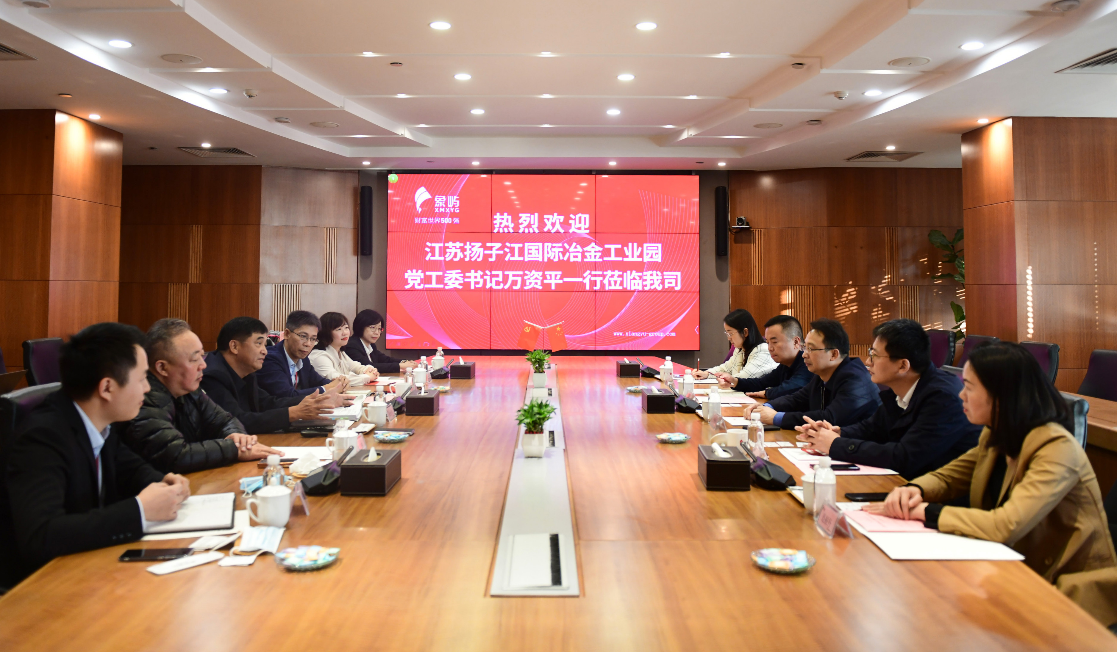 12月14日,江蘇揚(yáng)子江國(guó)際冶金工業(yè)園黨工委書記萬(wàn)資平一行到訪象嶼集團(tuán)。象嶼集團(tuán)黨委書記、董事長(zhǎng)張水利等熱情接待。