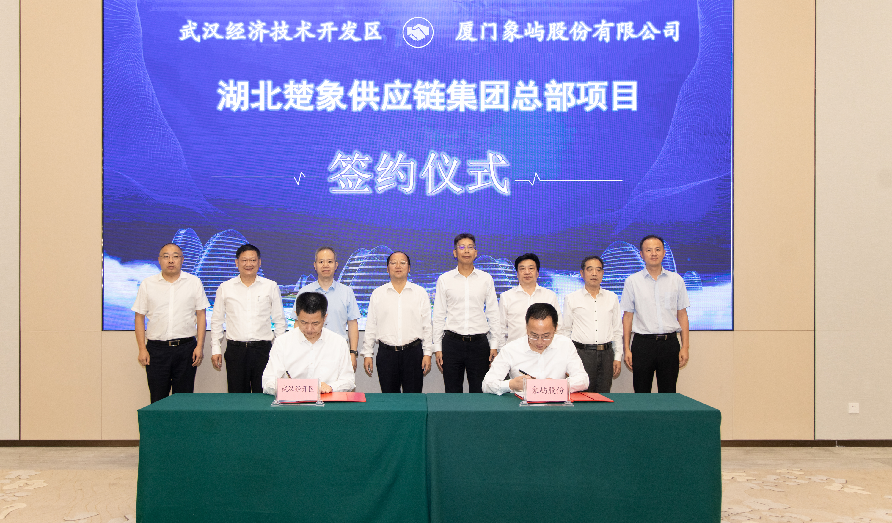 9月28日下午,廈門象嶼股份有限公司與武漢經(jīng)濟(jì)技術(shù)開發(fā)區(qū)簽署項目合作協(xié)議,湖北楚象供應(yīng)鏈集團(tuán)總部項目正式落戶武漢經(jīng)開區(qū)。在象嶼股份黨委書記、總經(jīng)理齊衛(wèi)東,市委常委、武漢經(jīng)開區(qū)工委書記劉子清,湖北交通投資集團(tuán)有限公司黨委書記、董事長龍傳華,黨委副書記、總經(jīng)理盧軍等共同見證下,象嶼股份黨委委員、副總經(jīng)理范承揚(yáng)與武漢經(jīng)開區(qū)工委副書記、管委會主任唐超分別代表雙方簽約。